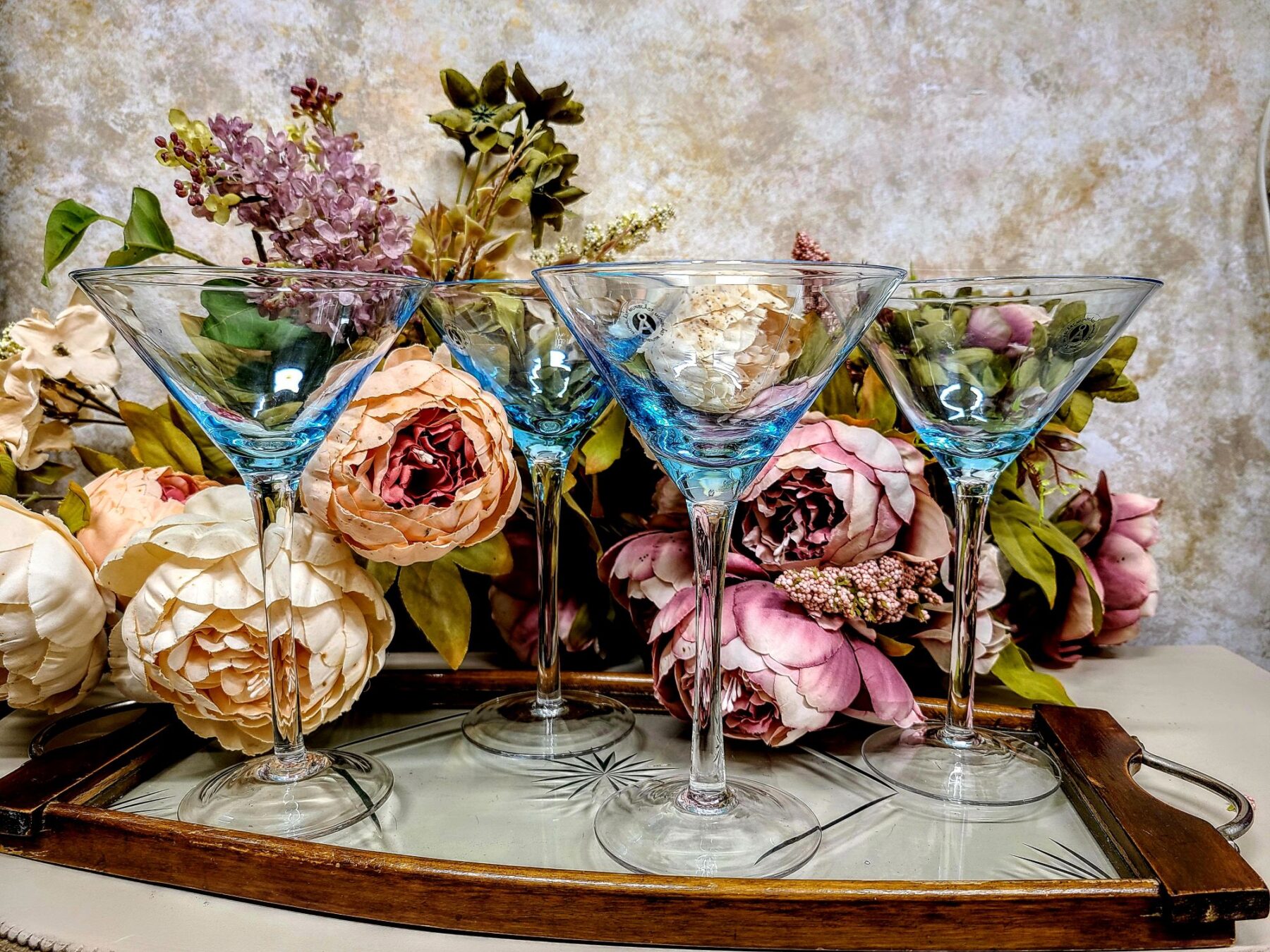 Skandinaavia suuga puhutud ( Munblåst ) kunstklaasist kokteili ja martini pokaalid. Õrn türkiissinine toon loob valguses pehme helgi. Kaunis pokaal on käsitöö, täis põhjamaist minimalismi ja õhulist elegantsi.