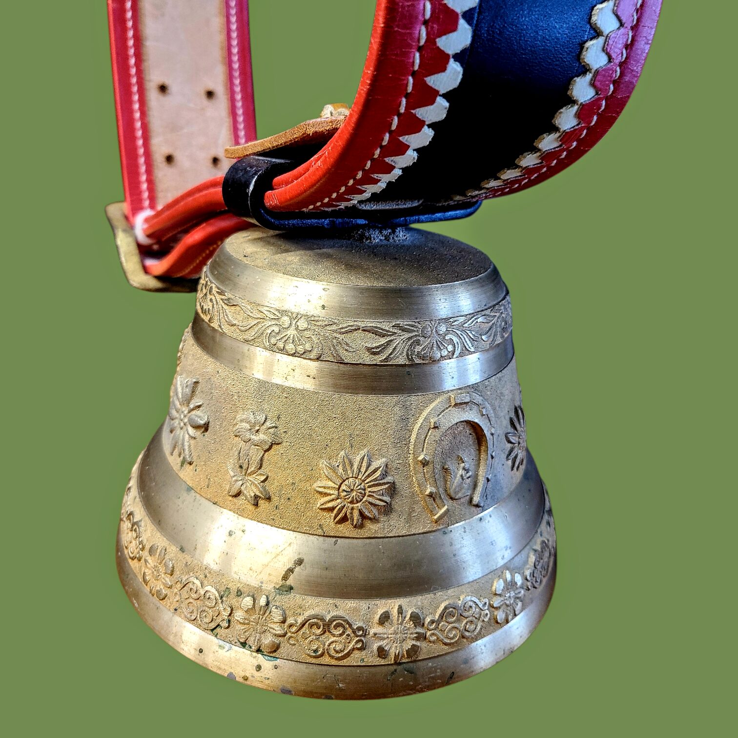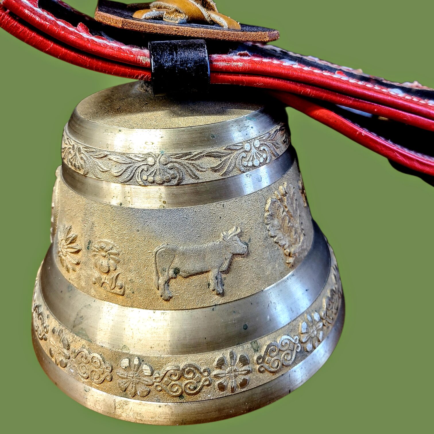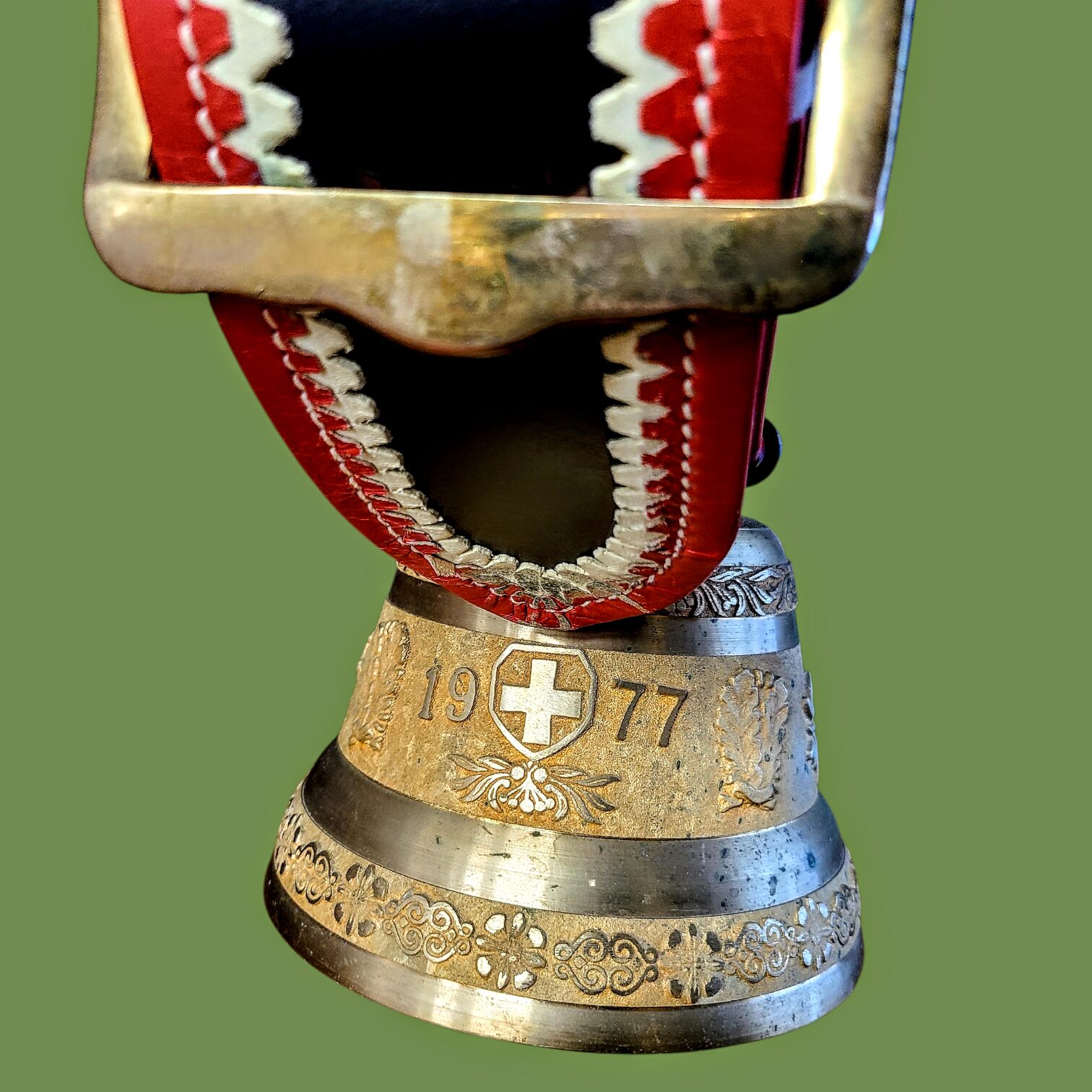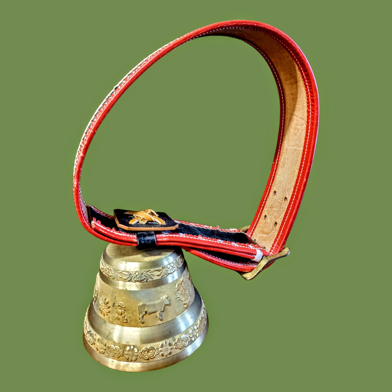 Šveitsi dekoratiivne lehmakell nahkrihmaga, vintage 1977