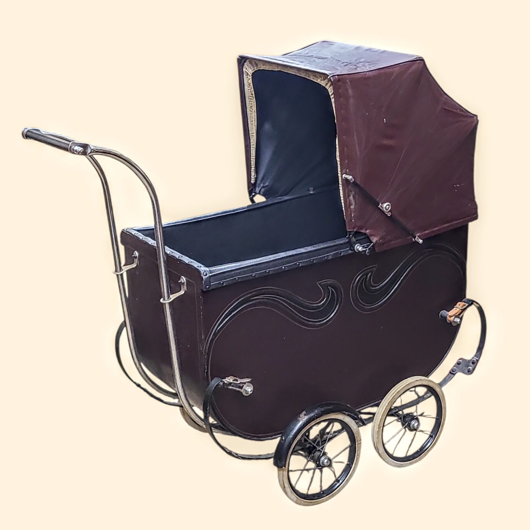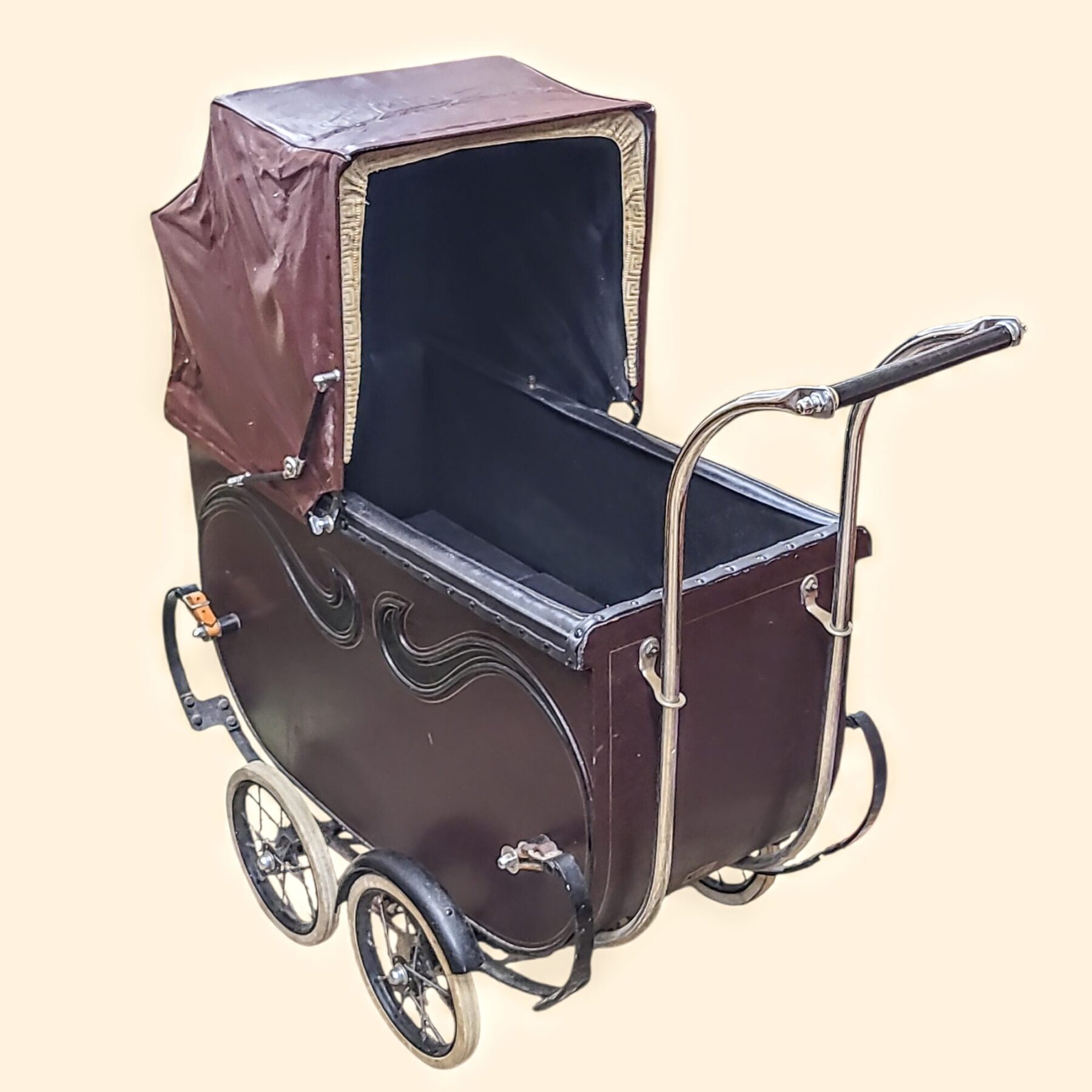 Originaalne Feevay „Made in England“ märk mõjub kui meistri signatuur – vaikne kinnitus Inglise tootmistraditsioonist, kus kvaliteet ja hoolikus olid enesestmõistetavad. Kodaratega rattad ja metallist detailid kõnelevad ajast, mil esemeid ei loodud üheks hooajaks, vaid terveks eluks.